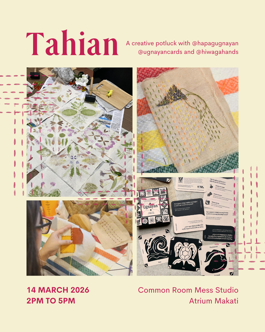 Join us for upcoming creativity potlucks (o sama-samang paglikha) at Latag, Tahi + get a chance to win a deck of Ugnayan Cards!